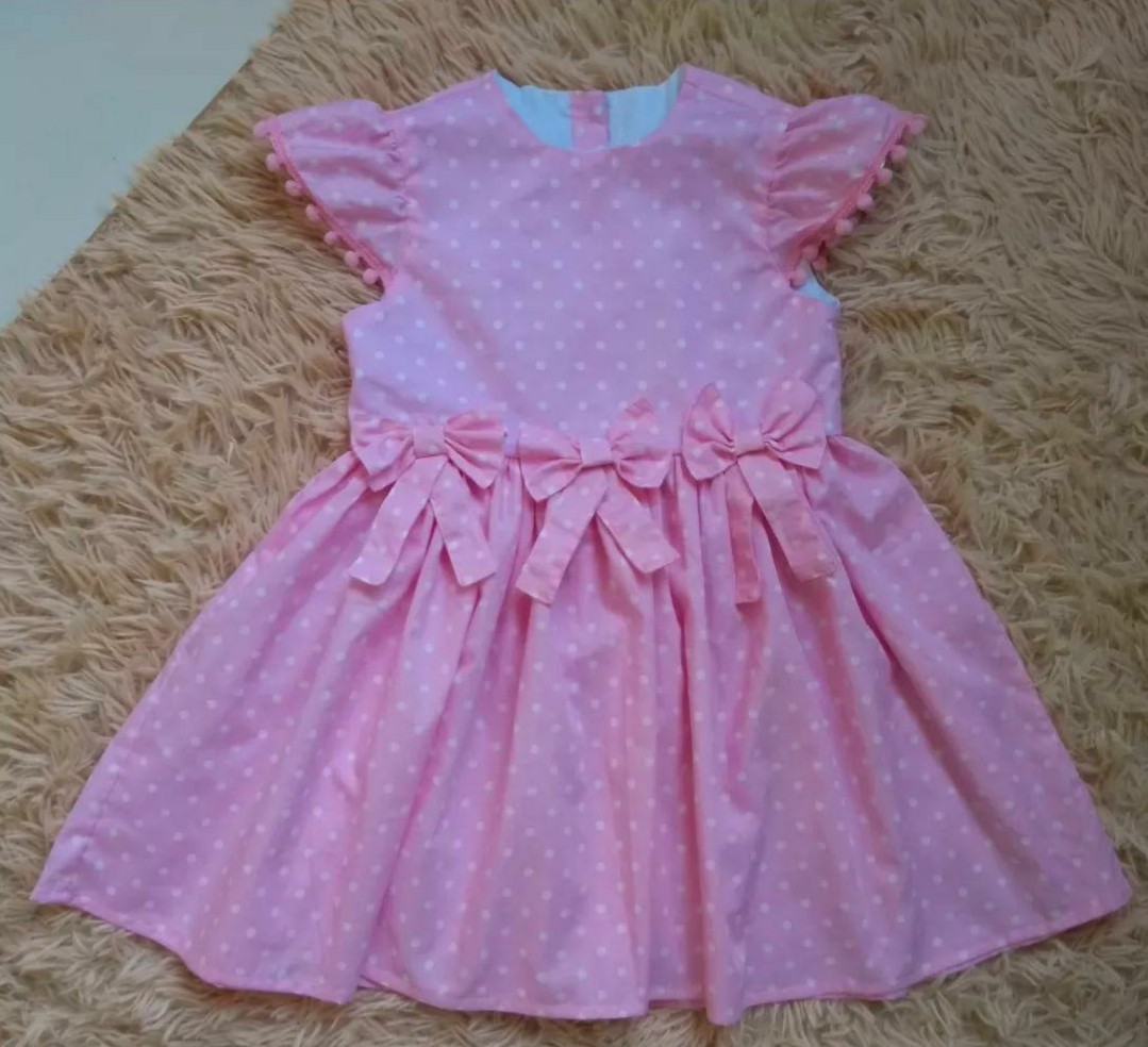 100% algodão, corpinho forrado, 3 laços frontais no recorte da cintura.